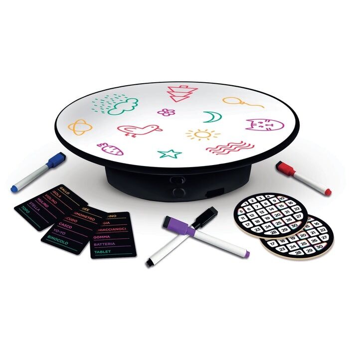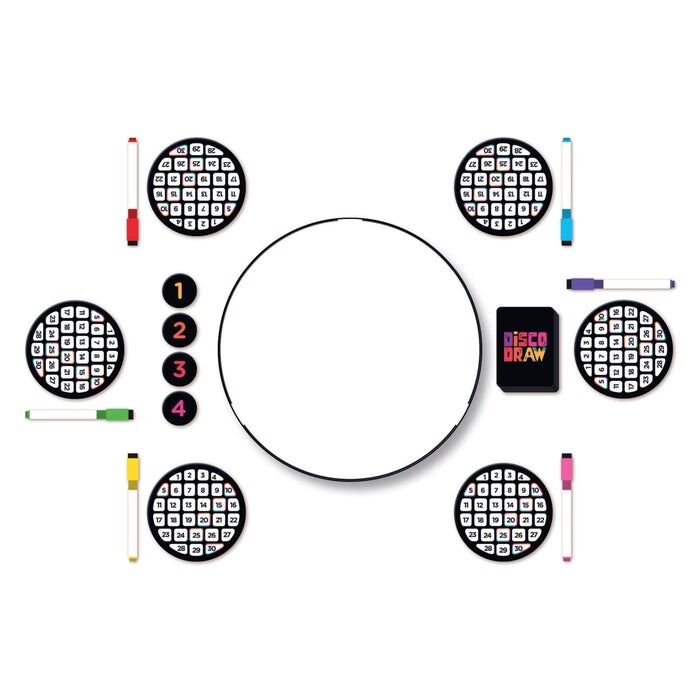 Players draw simultaneously on a rotating board. Drawing will be challenging, but guessing will be fun.