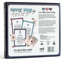Rediscover the fun and excitement of dating with this unique card game, designed to keep the spark alive. Fate plays a role in determining the course of your date night! Play the game to reveal the hidden categories… then let fate unfold.